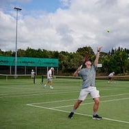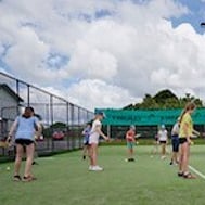 Our club has seven astroturf courts and one hard court, five of which are flood lit.